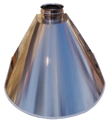 Cappa per barcecue realizzata in acciaio inox AISI304 sp. 8/10 con finitura satinata tipo scotchbrite a base semicircolare predisposta per il fissaggio a parete. Dimensione standard della cappa per aspirazione brace di griglia per arrostire o per cucina cm. 55x55 h.35 con imbocco per uscita fumi diametro 150 mm.